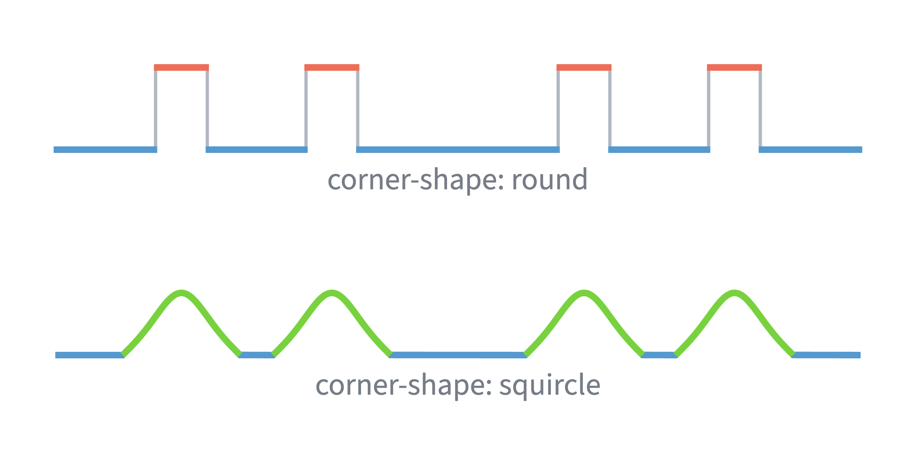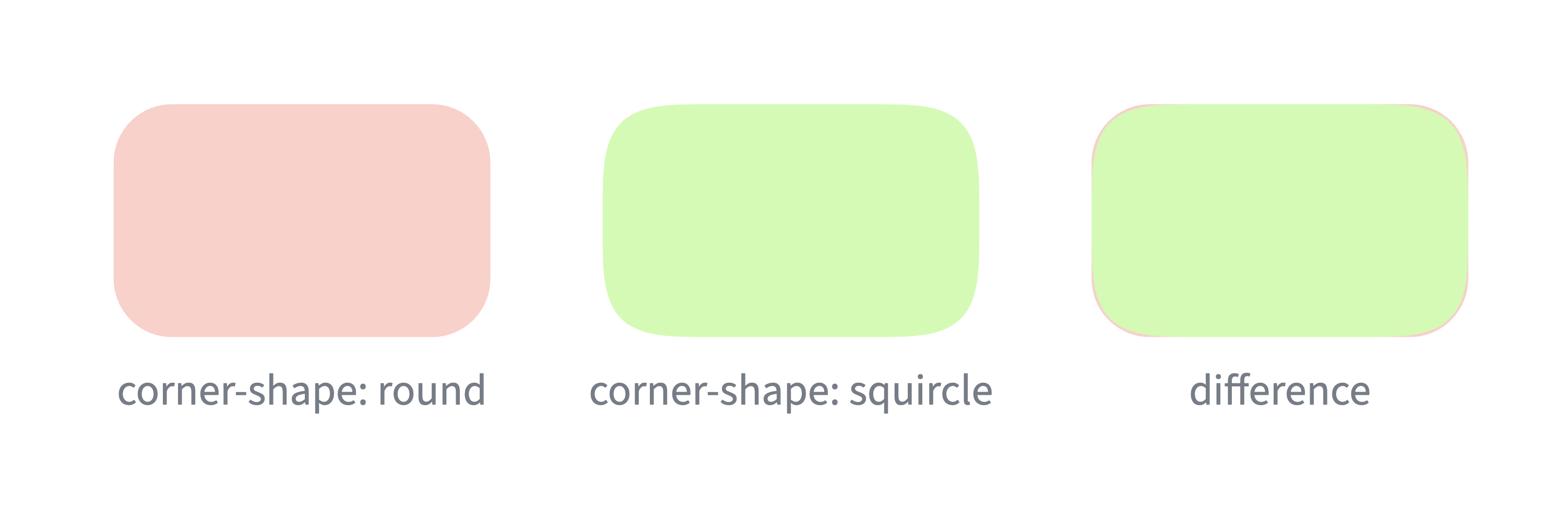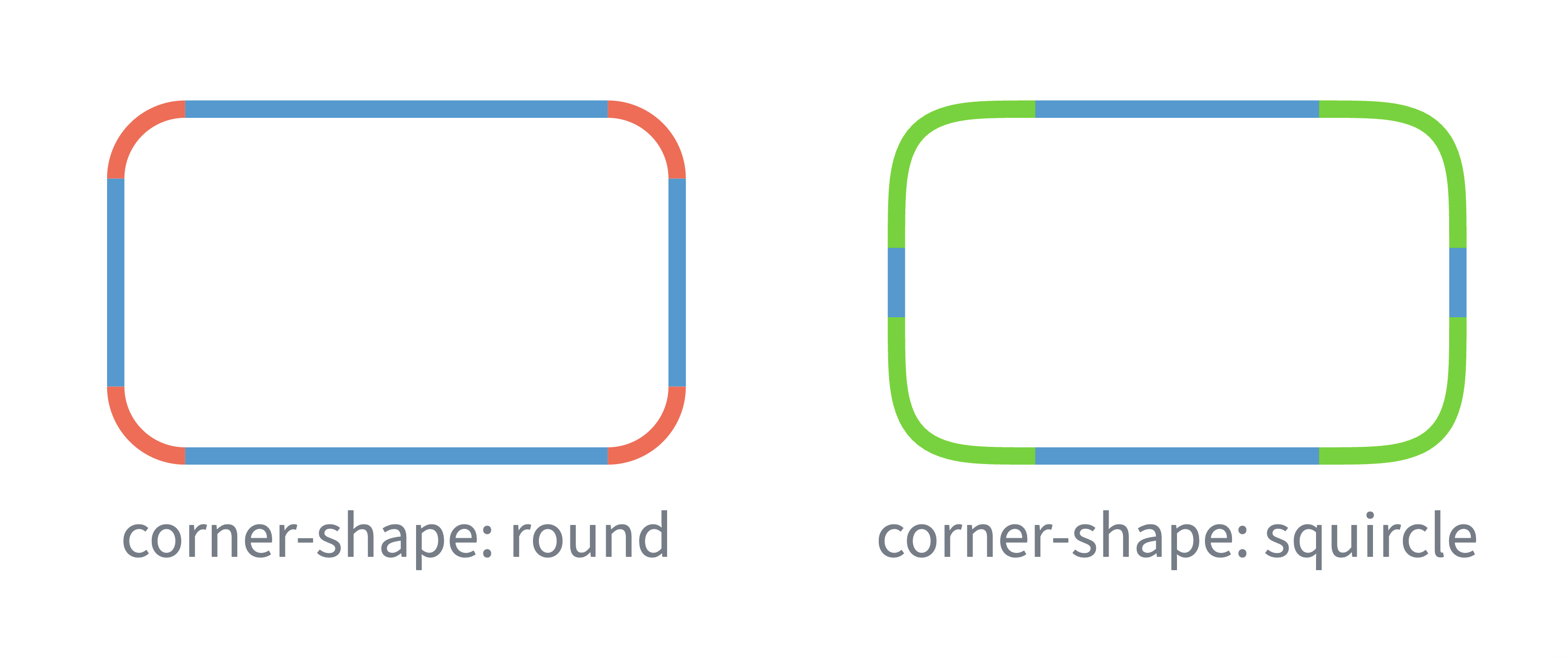 This property allows you to change the shape of rounded corners set by border-radius. There are many other use cases, like creating notches, hexagons, octagons, arrows, chat bubbles; see this, this, and this. For us, essential is the value corner-shape: squircle. It replaces circular corners with much nicer squircle ones.