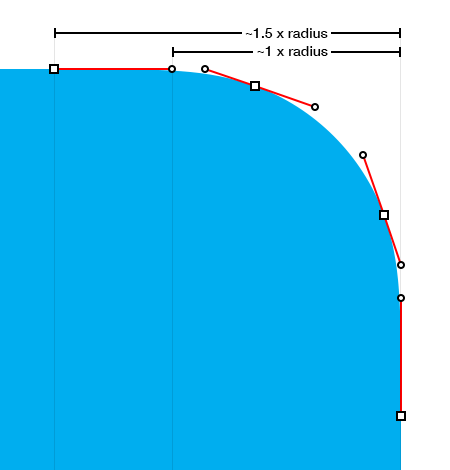 // Bézier control points for the top-right squircle corner (radius = 1)